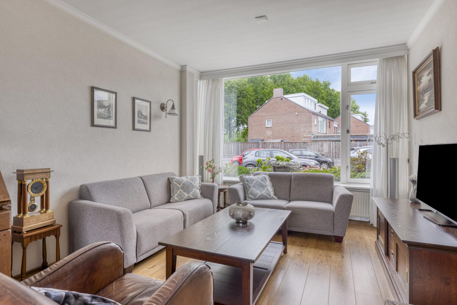 De woonkamer staat in open verbinding met de keuken aan de achterzijde in de uitbouw.