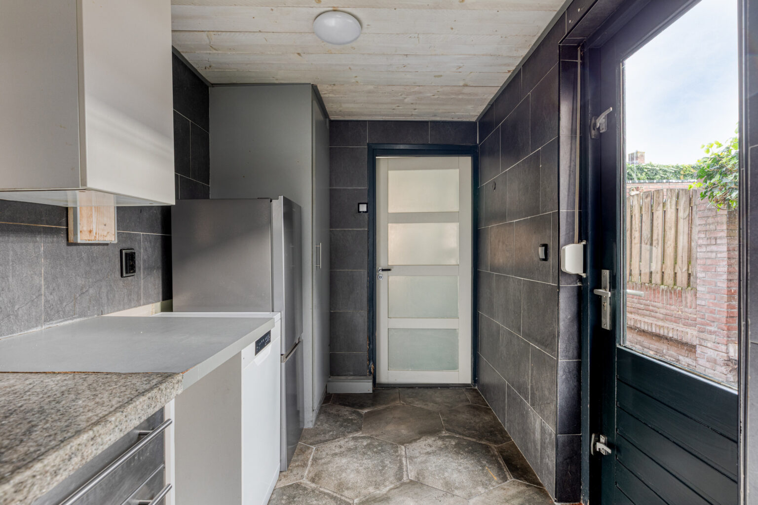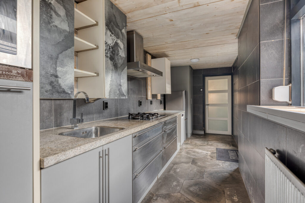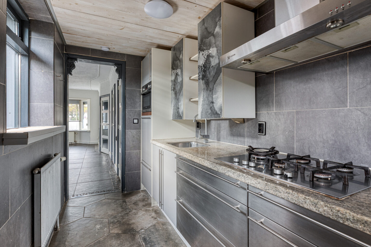 Via de woonkamer bereik je de trapopgang en de praktische trap-/kelderkast – ideaal als extra bergruimte. Aansluitend vind je de ruime aanbouw met de keuken, voorzien van een 5-pits gaskookplaat, afzuigkap, oven, losse koelkast en vaatwasser. Hier bevindt zich ook de cv-ketel (bouwjaar 2018).