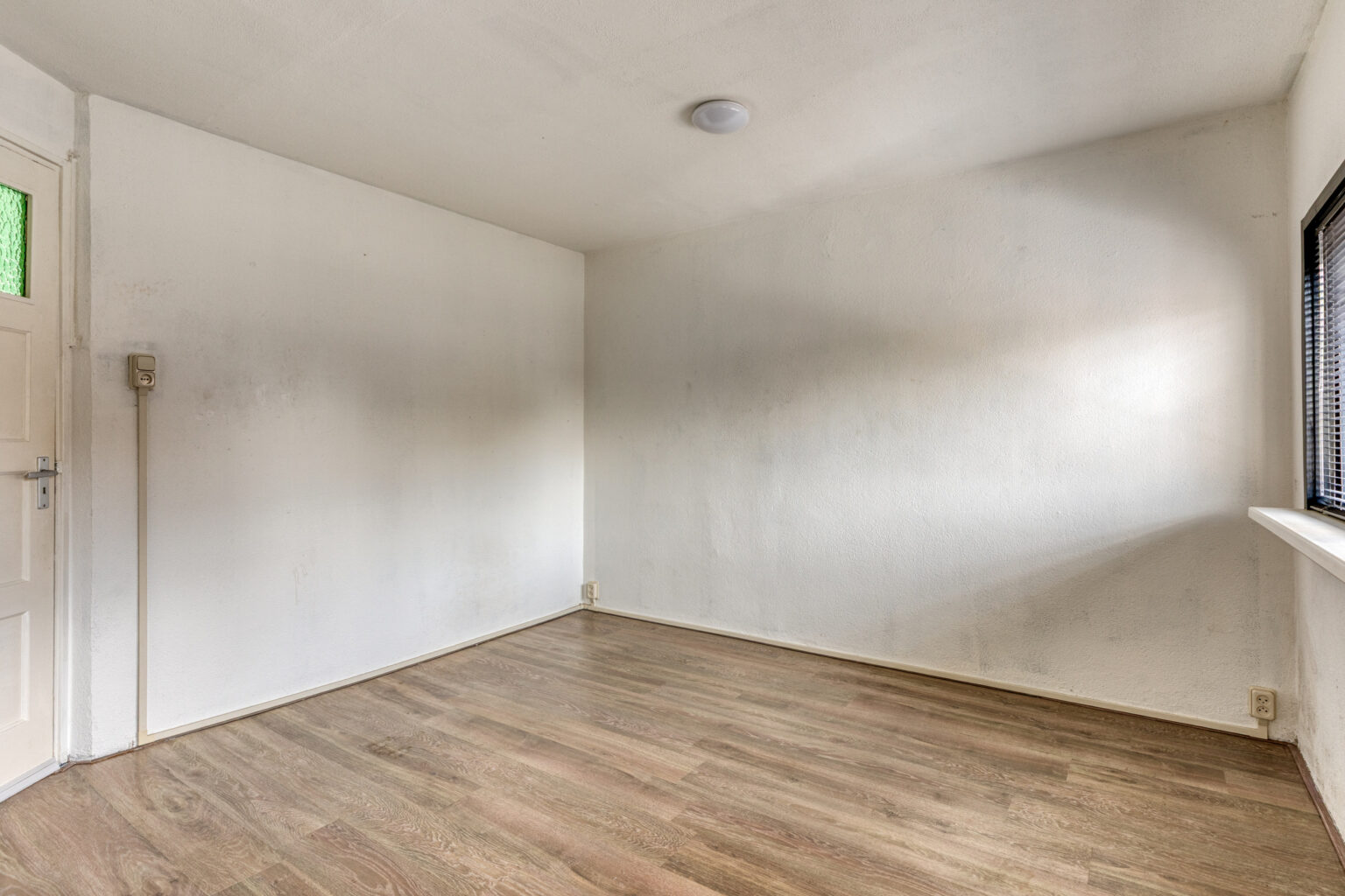 Op de eerste verdieping bevinden zich twee slaapkamers en de trapopgang naar de tweede verdieping. Beide kamers zijn voorzien van laminaatvloeren en stucwanden.