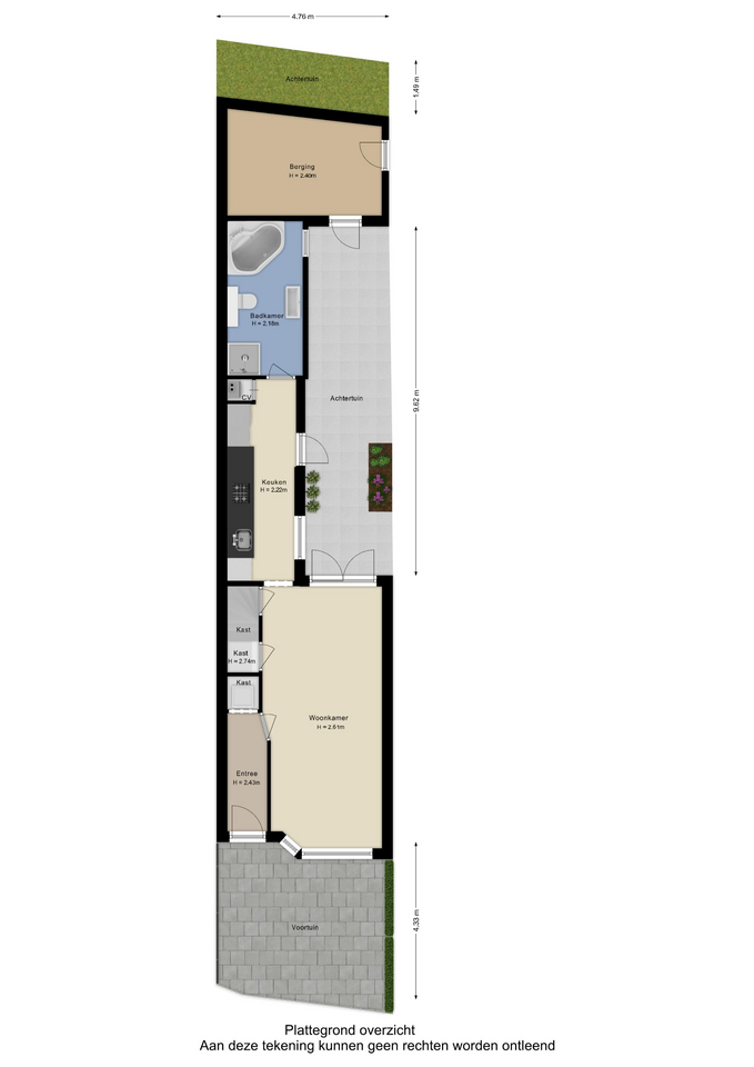 De stadstuin is onderhoudsvriendelijk aangelegd met bestrating en beschikt over een stenen berging met elektra – ideaal als extra opslagruimte of hobbyplek. Dankzij de schutting geniet je hier van rust en privacy. Ook de voortuin is netjes aangelegd en biedt een fijne plek om in het zonnetje te zitten.