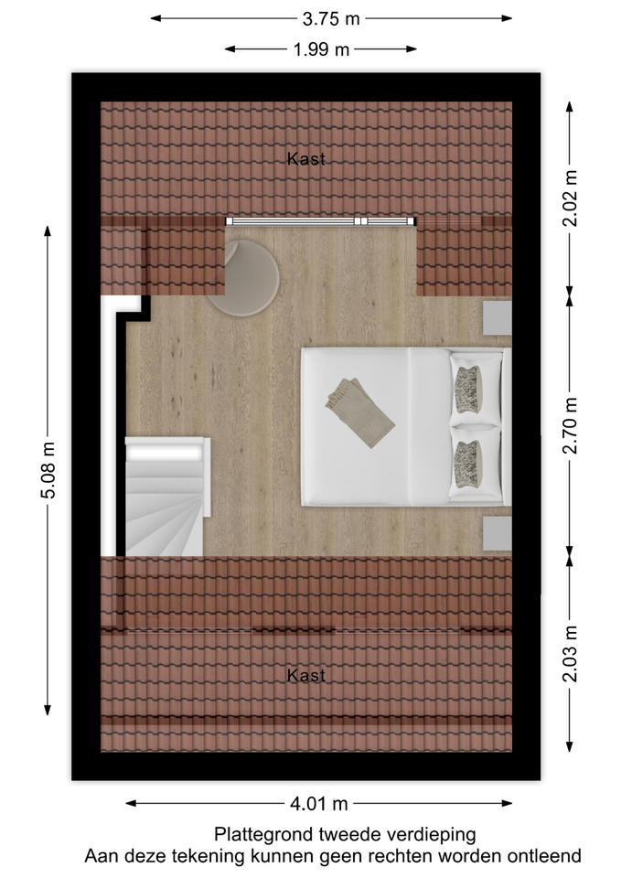 Via een vaste trap kom je op de ruime zolderkamer met dakkapel. Deze kamer is voorzien van laminaat en stucwerk en kan perfect dienen als extra slaapkamer, thuiswerkplek of hobbyruimte.