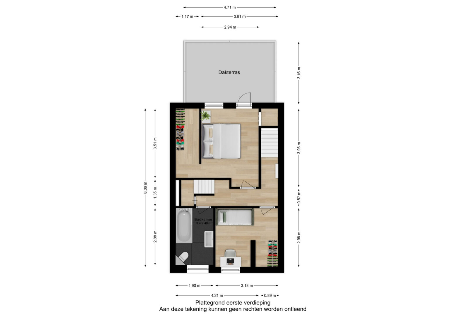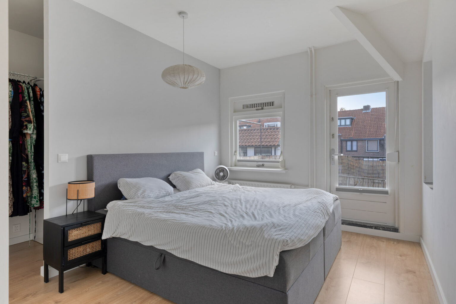 De slaapkamer aan de achterzijde biedt middels een loopdeur toegang tot het dakterras.