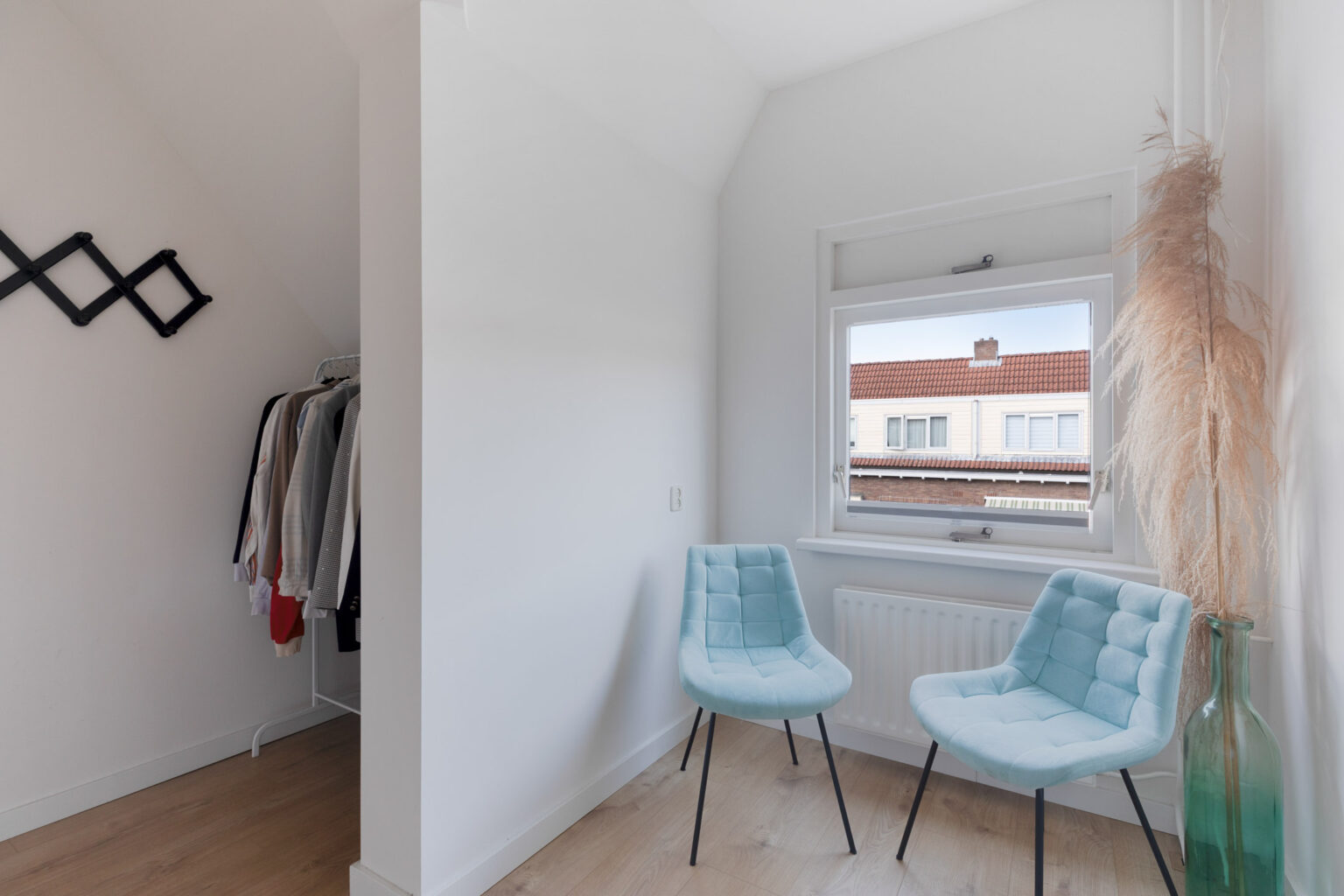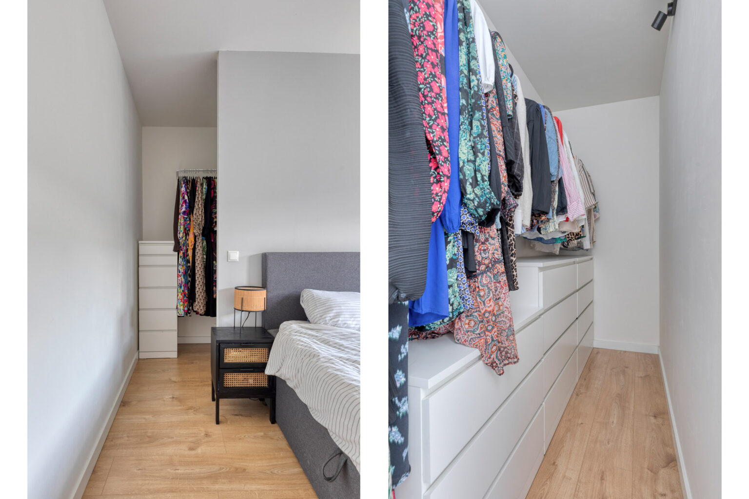 Op de verdieping vind je twee fijne slaapkamers, beide voorzien handige inloopkasten die zorgen voor optimaal opberggemak. Vanuit de slaapkamer aan de achterzijde bereik je een heerlijk dakterras.