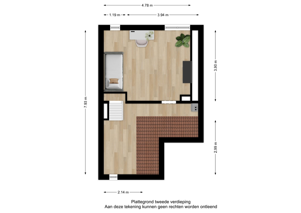 De tweede verdieping biedt uitstekende mogelijkheden om een royale derde slaapkamer te creëren. Dankzij de dakkapel, de vele m² en de vaste trap tref je een ruime en lichte kamer. De ruimte is nog af te werken en hier bevindt zich tevens de cv-installatie (Intergas, bouwjaar 2024).