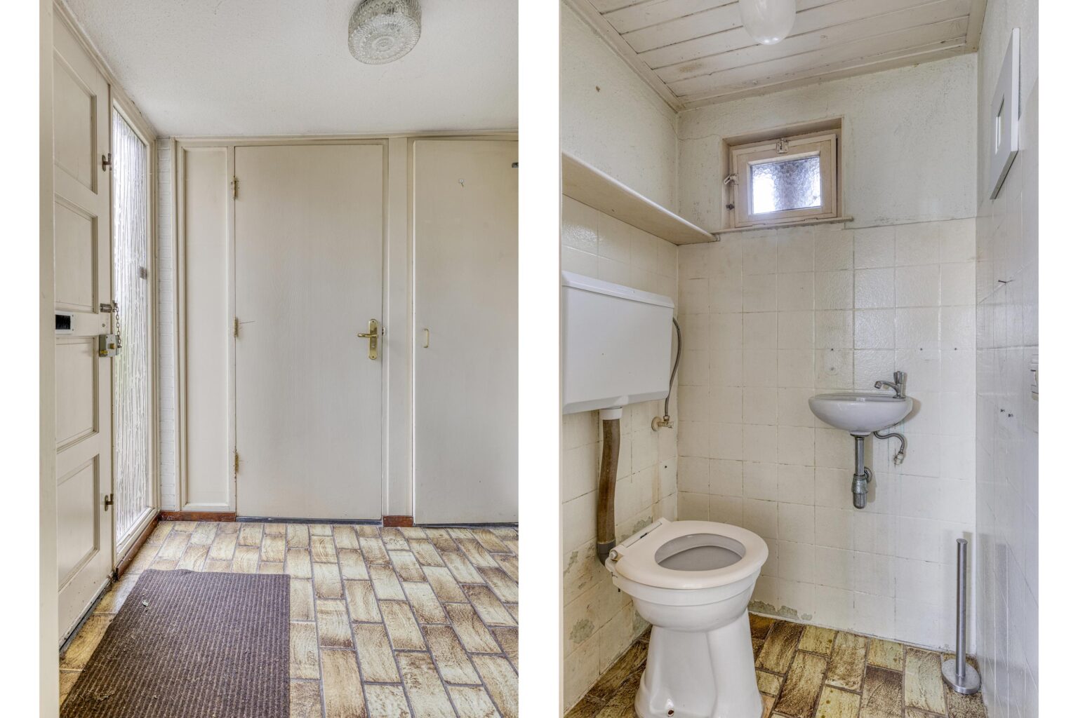 De hal is voorzien van plavuizen, stuc/metselwerkwanden, spuitwerkplafond en leidt naar de meterkast en het toilet.