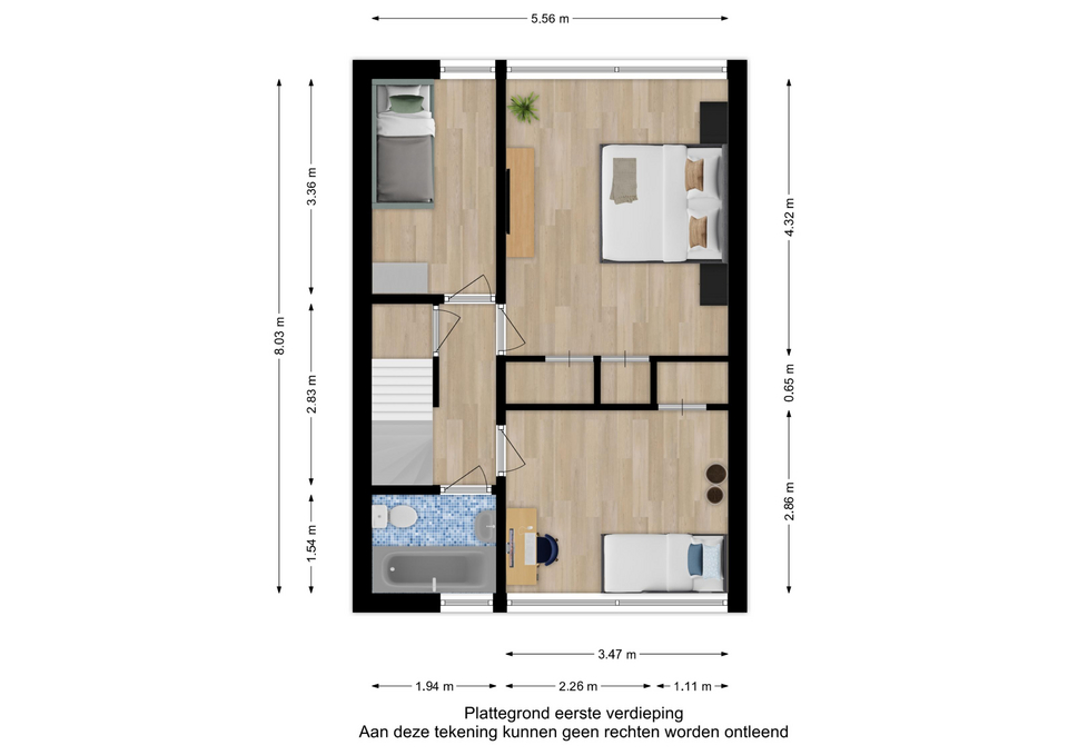 Via de overloop bereik je 3 slaapkamers, de badkamer en de trapopgang naar de 2e verdieping.