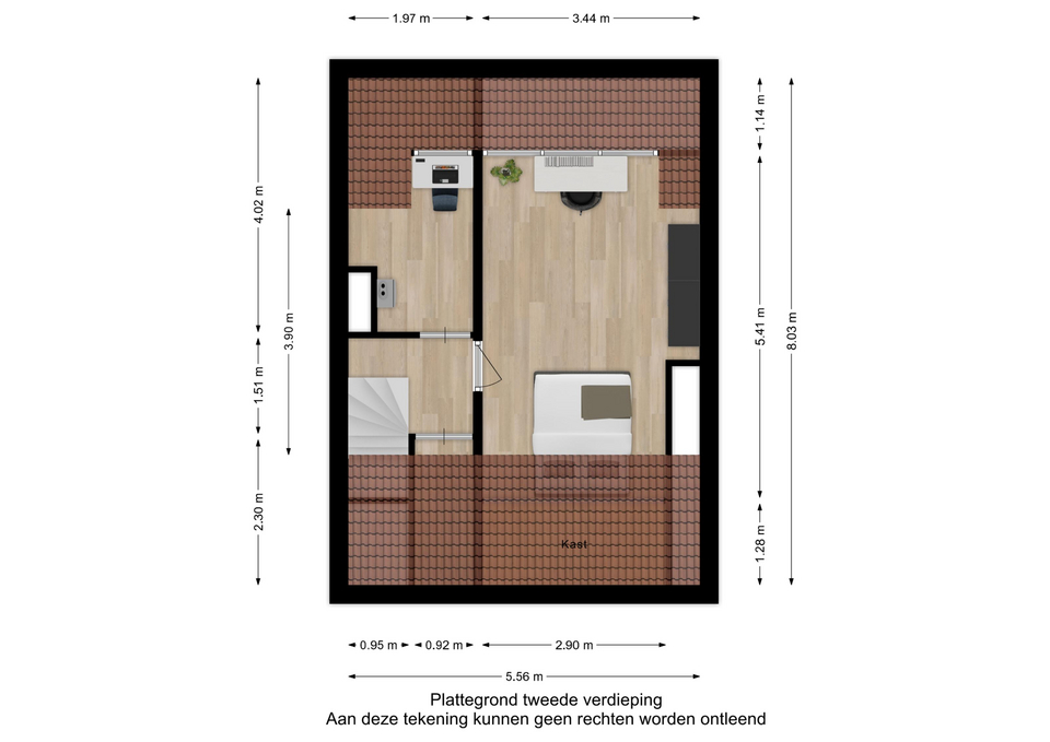 Op de tweede verdieping bereik je de 4de slaapkamer, cv-ruimte en bergruimte..