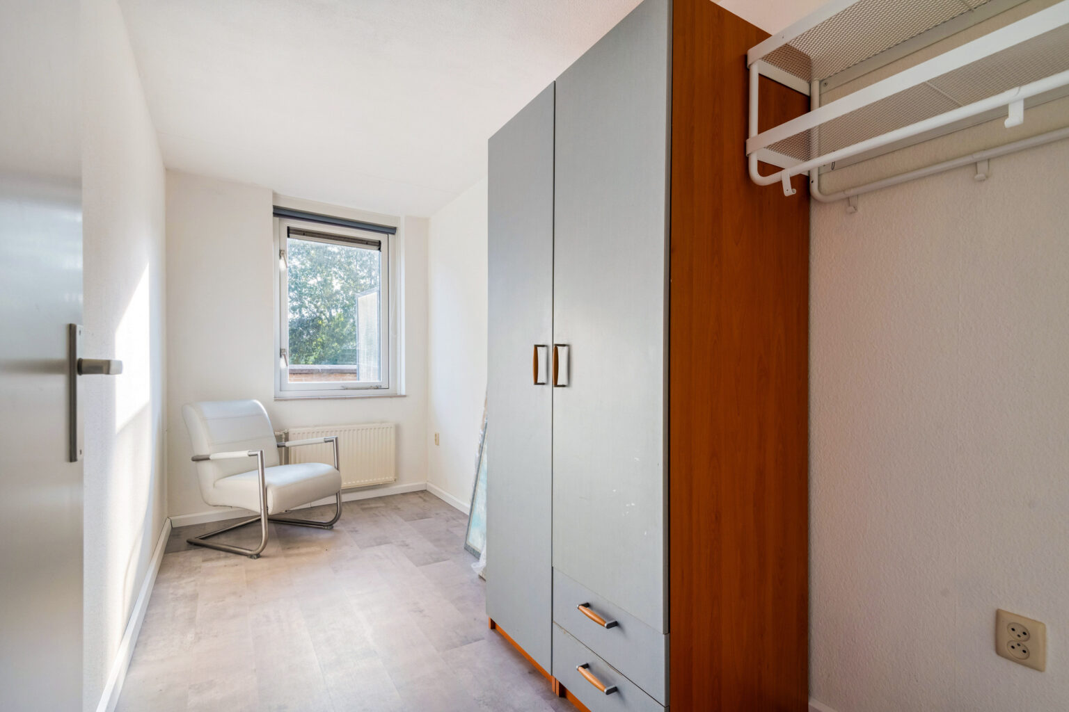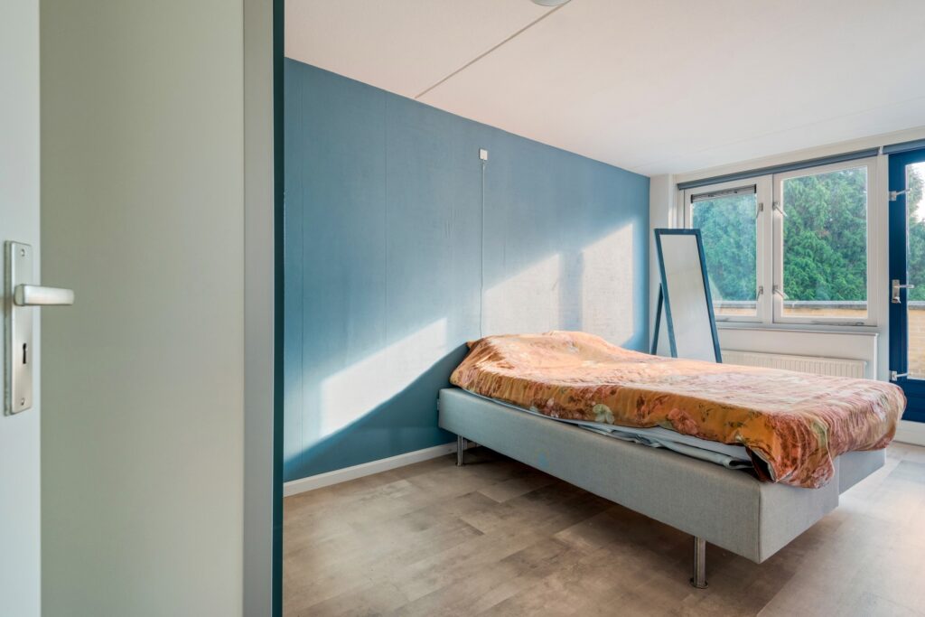 De slaapkamers tref je aan de galerijzijde. Ze bieden laminaat, stuc/behangen wanden en fijne m2.