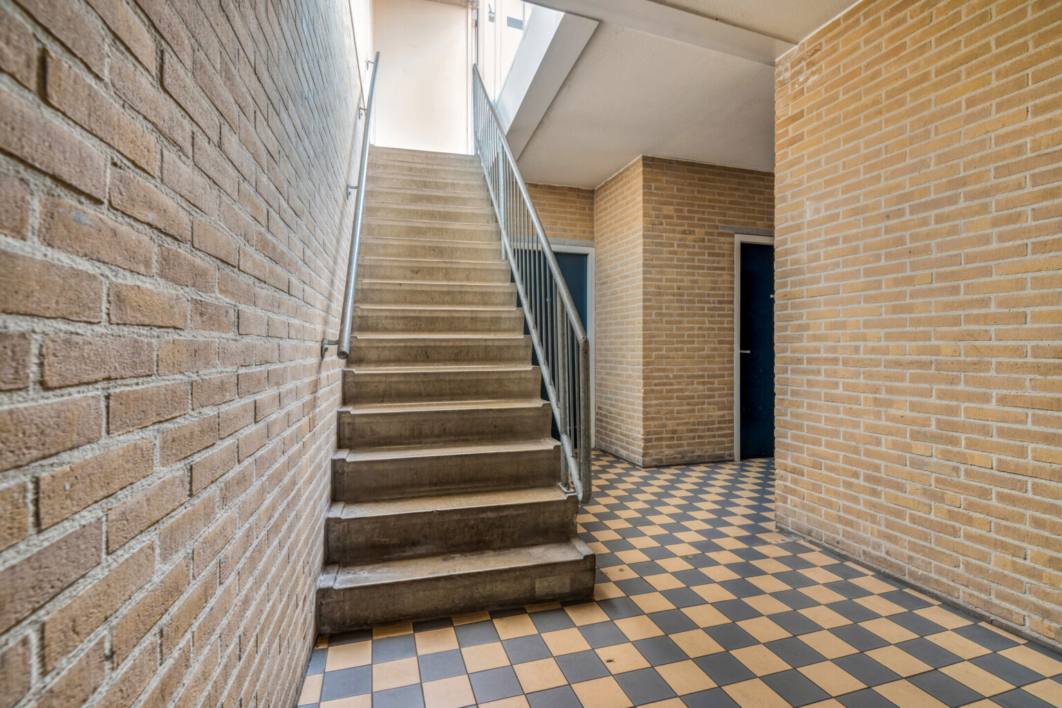Afgesloten entree met brievenbussen, bellentableau en trap naar de verdiepingen. Vanaf hier heb je ook toegang tot een ruime berging.