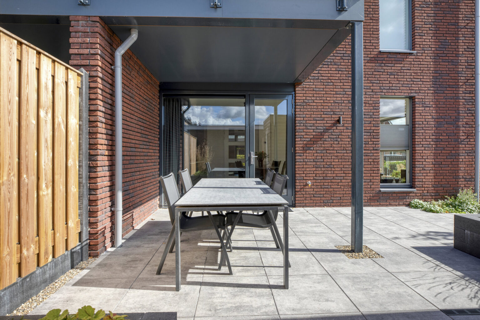 Ook de gezamenlijke voortuin is met oog voor detail ingericht en vormt samen met de privé-tuin een harmonieus geheel. Het geheel ademt zorg, sfeer en comfort – precies wat wonen hier zo bijzonder maakt.