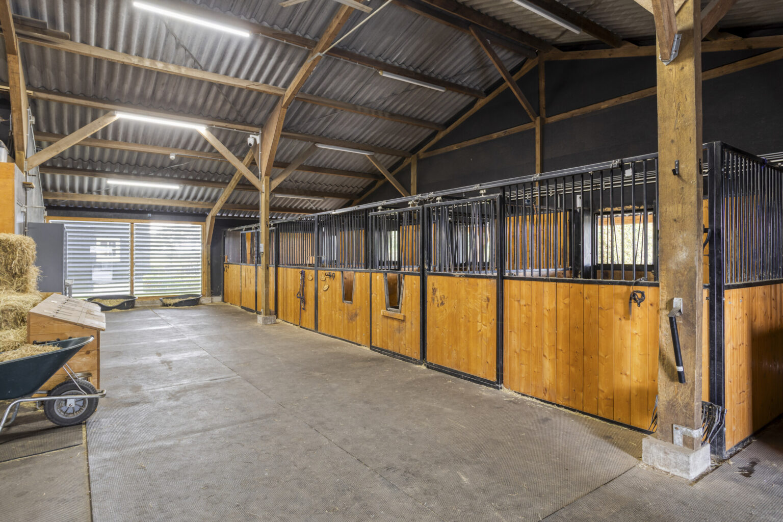- luxe stallen met fijne poetsplaats, kantine en toilet in het gebouw;