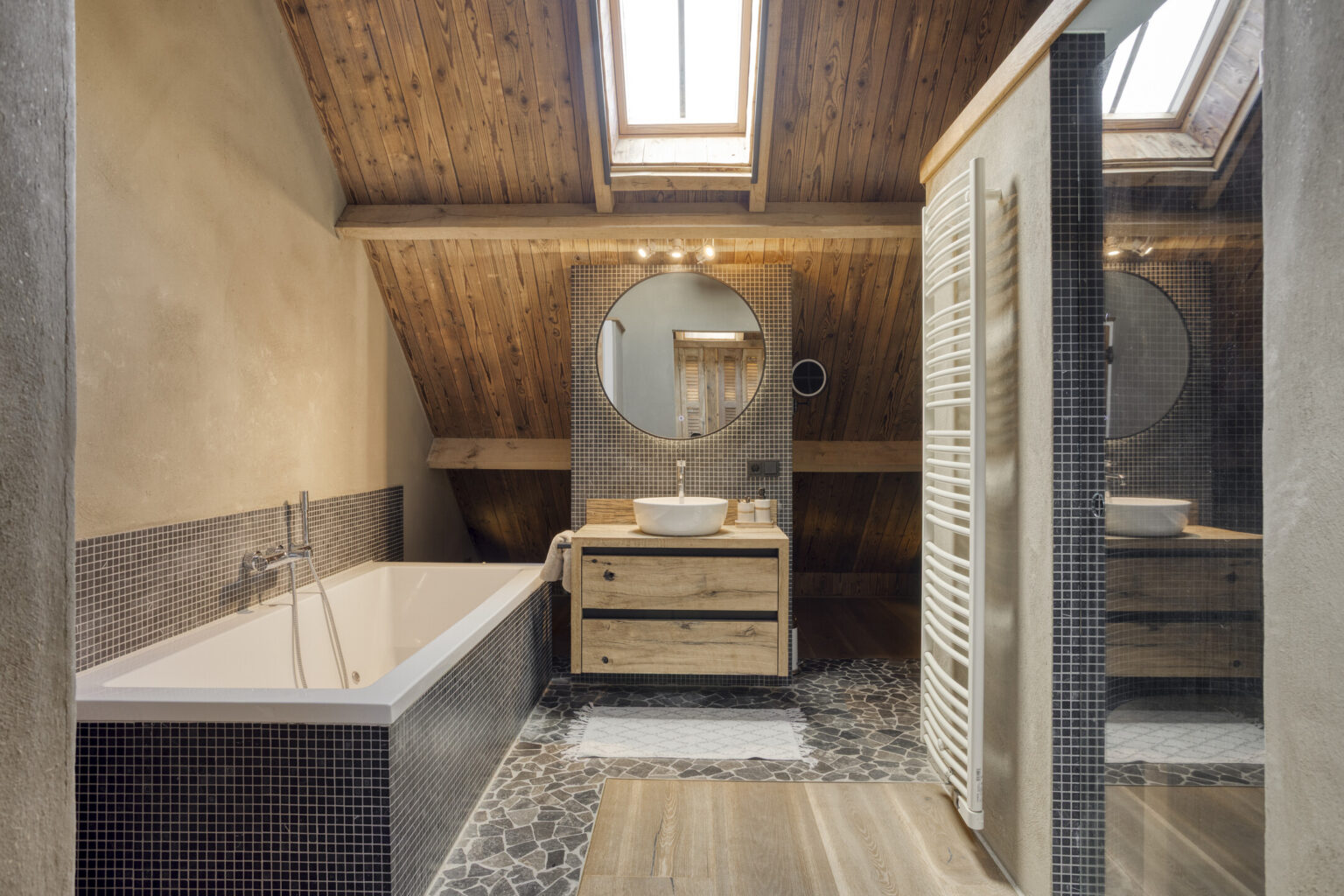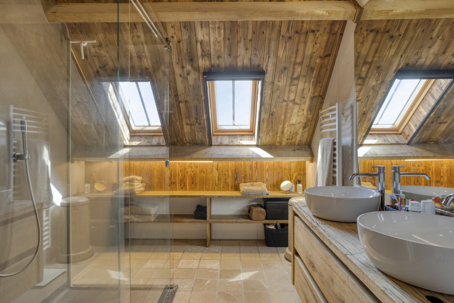 De badkamers bieden een spa-achtige ervaring met stijlvolle inloopdouches, ligbaden en hoogwaardige sanitair-elementen.
