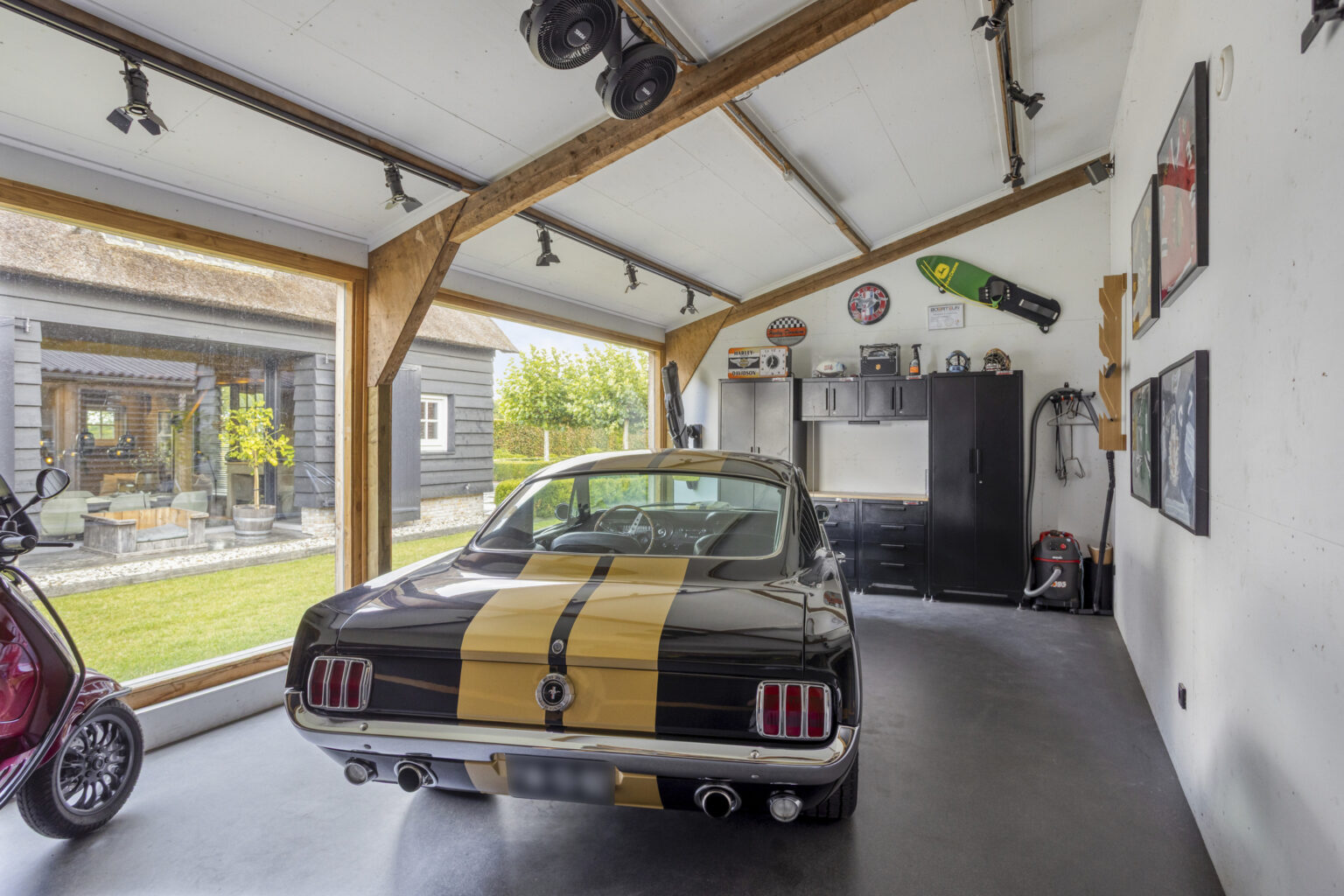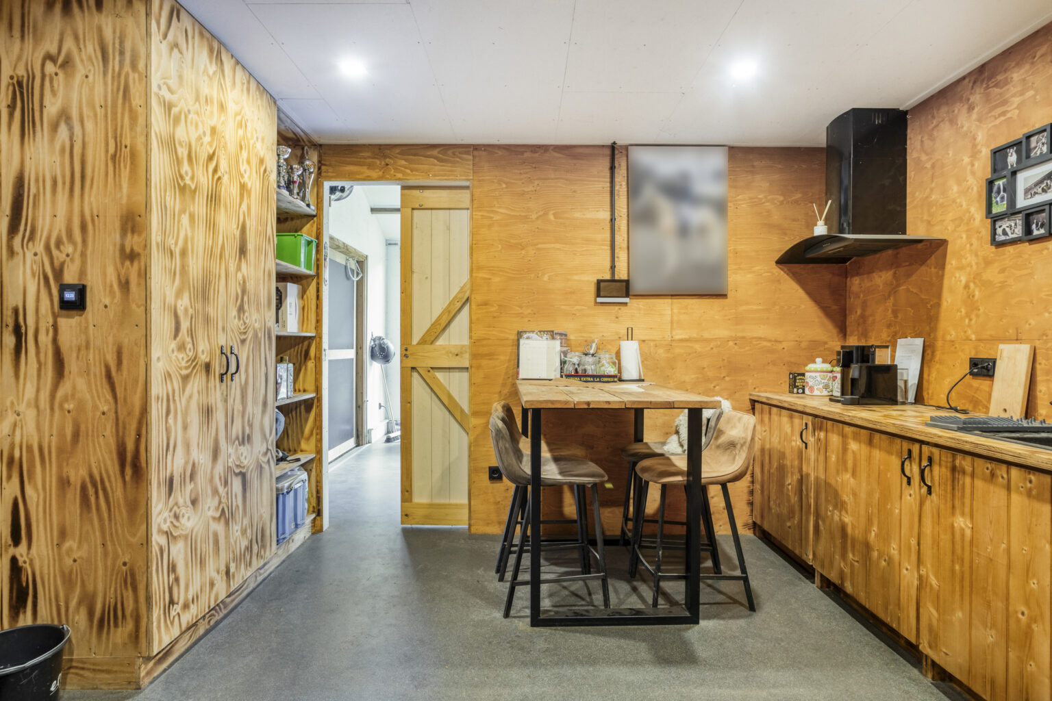 Bovendien tref je hier nog een garage, werkruimte, kantine met opstelling keukenblok, aansluiting voor wasappartuur en een toilet. Het bijgebouw is deels voorzien van vloerverwarming.
