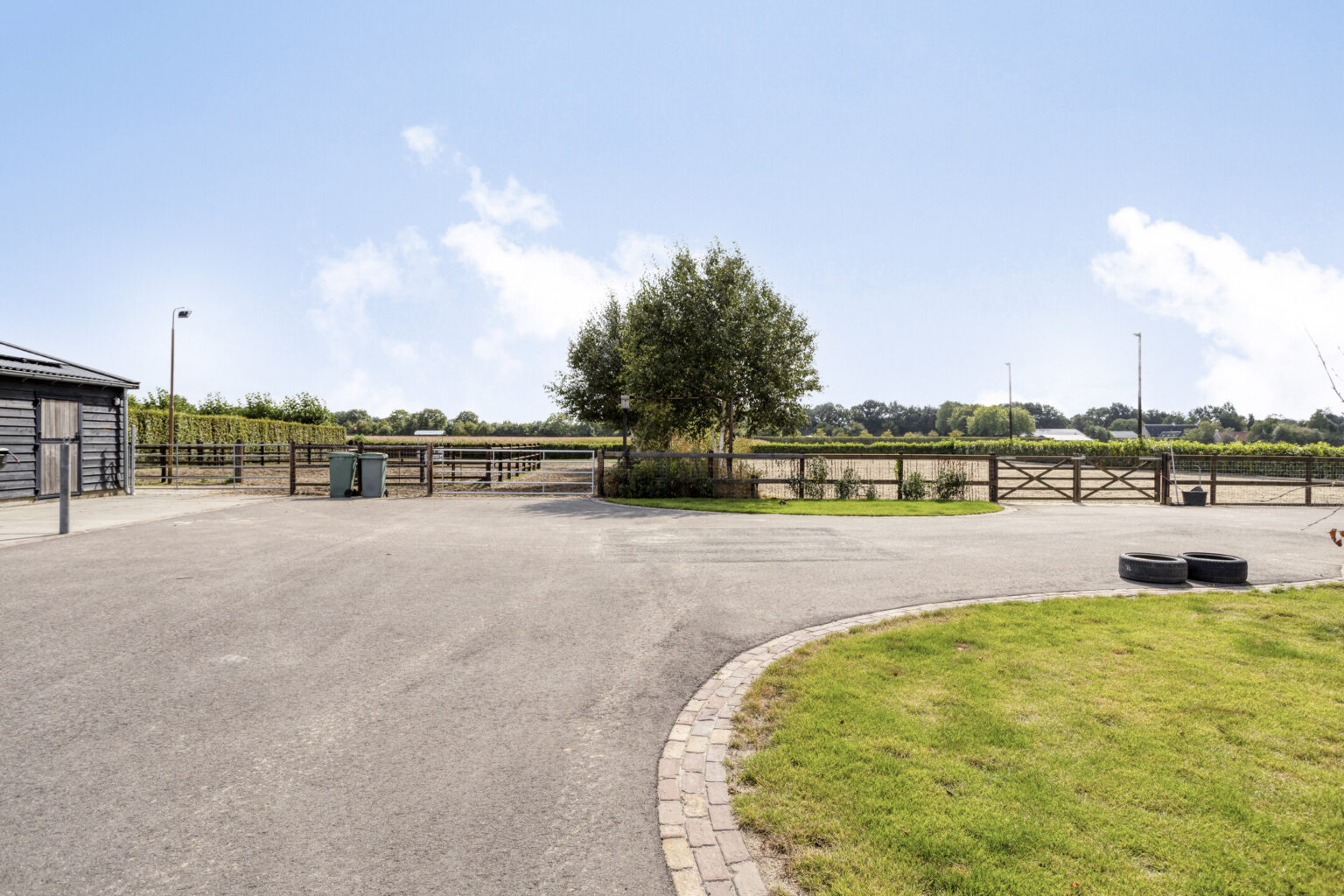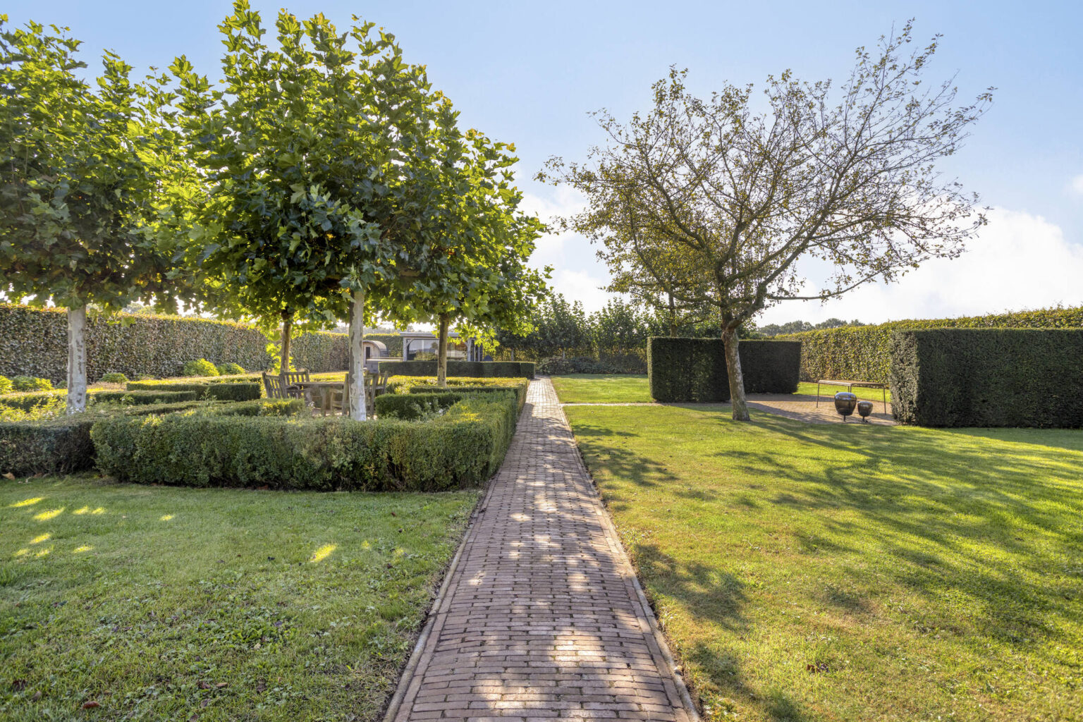 - de lange oprijlaan wordt afgesloten middels een elektrische poort;