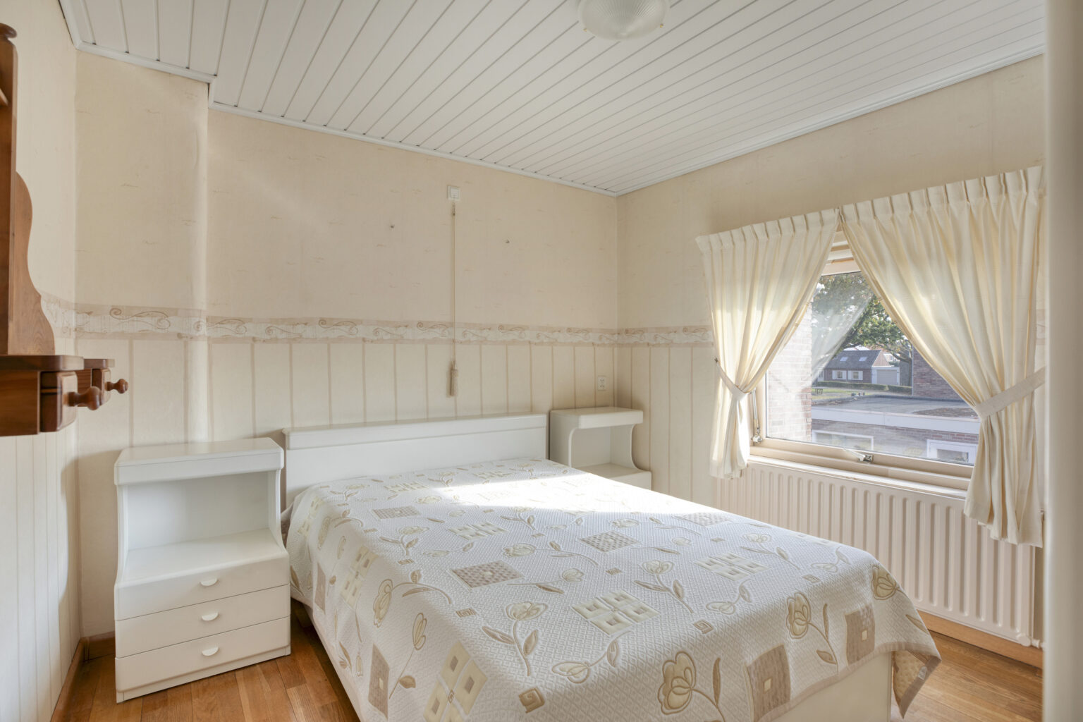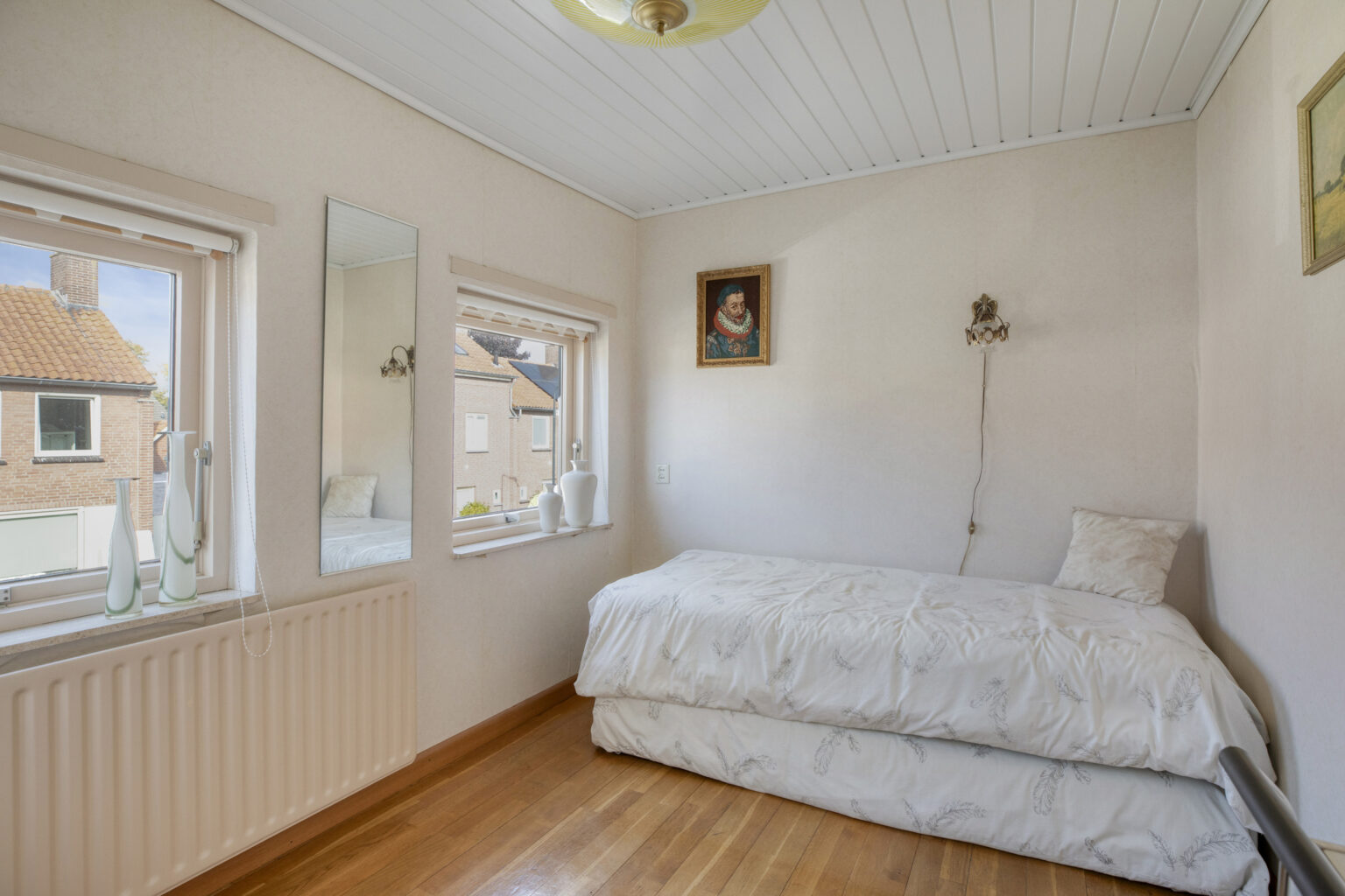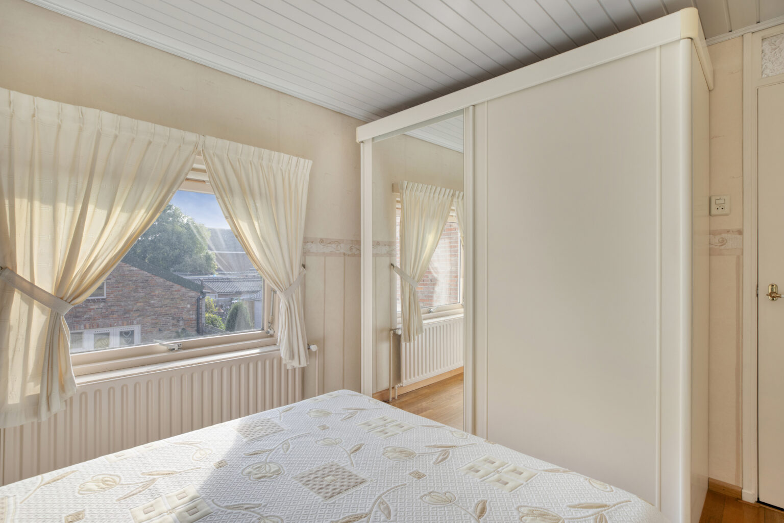 De slaapkamers zijn netjes afgewerkt met een parketvloer, behangen wanden en schrotenplafond en een inbouwkast.