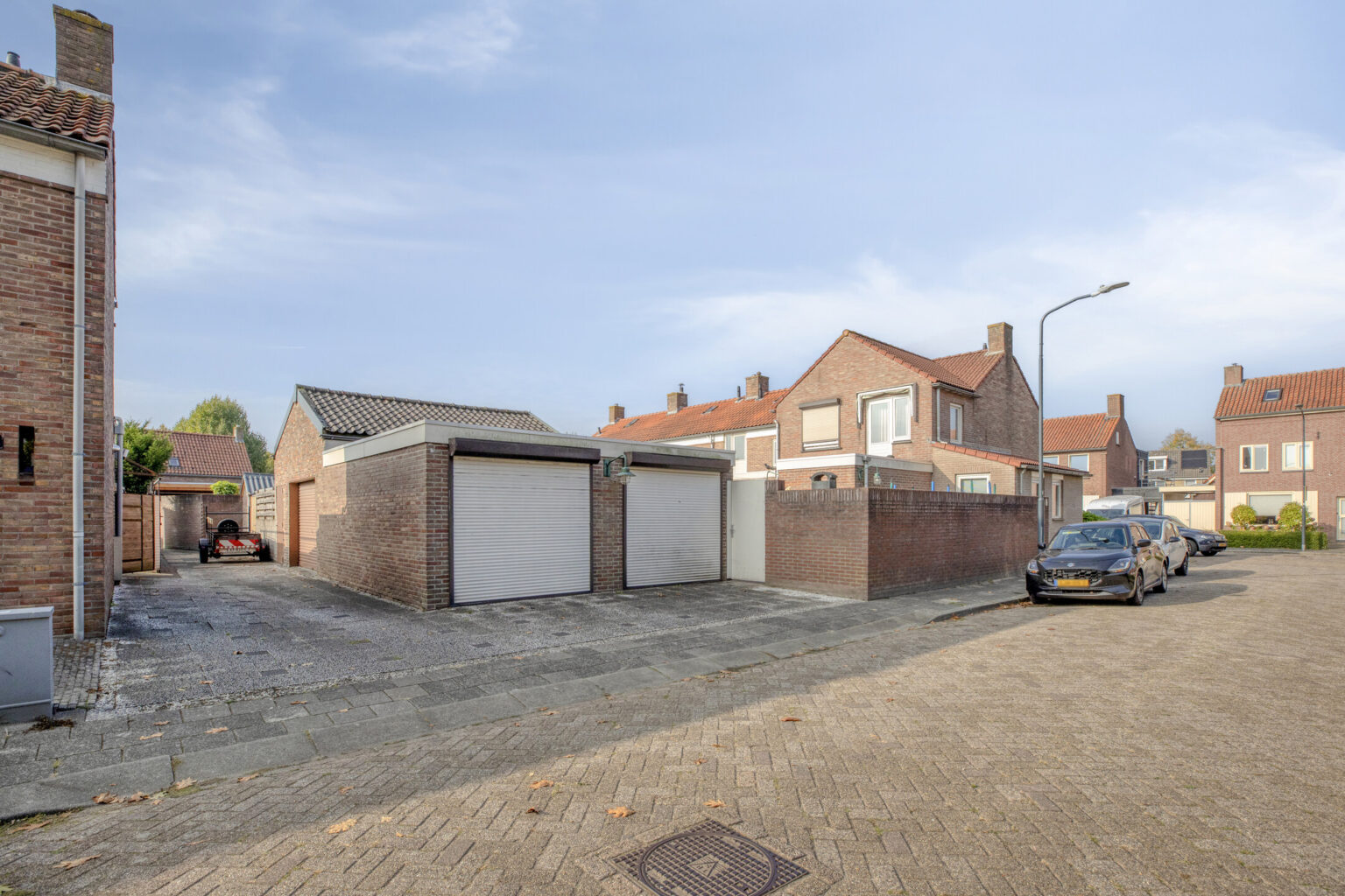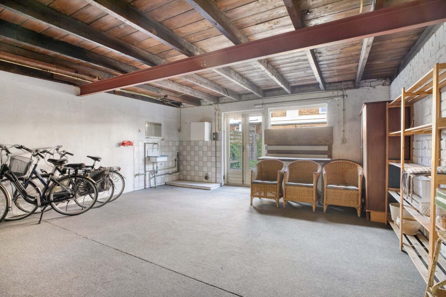 Achterin de tuin vind je het grote bijgebouw van ruim 40 m², ideaal als multifunctionele ruimte. Met een wasmachine-aansluiting, loopdeur, garagedeur, stortgoot en bergvliering is het een praktische en veelzijdige toevoeging aan de woning.
