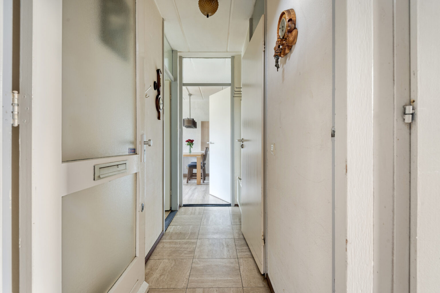 Via de nette hal bereik je de slaapkamer, badkamer en de woonkamer. Naast de voordeur vind je meterkast.