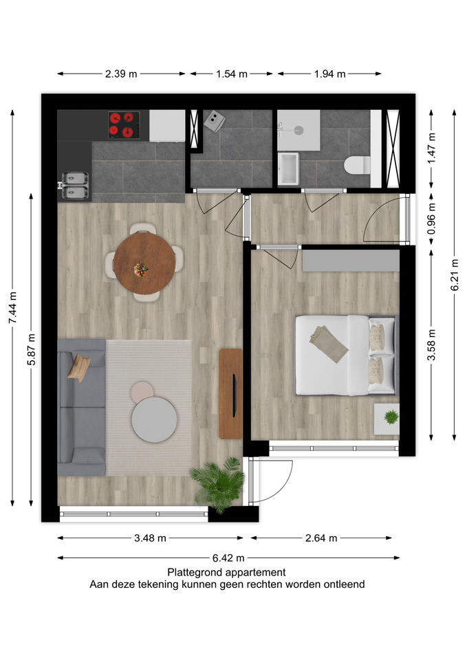Voor de afmetingen en indeling zie onze gedetailleerde plattegrond en brochure.