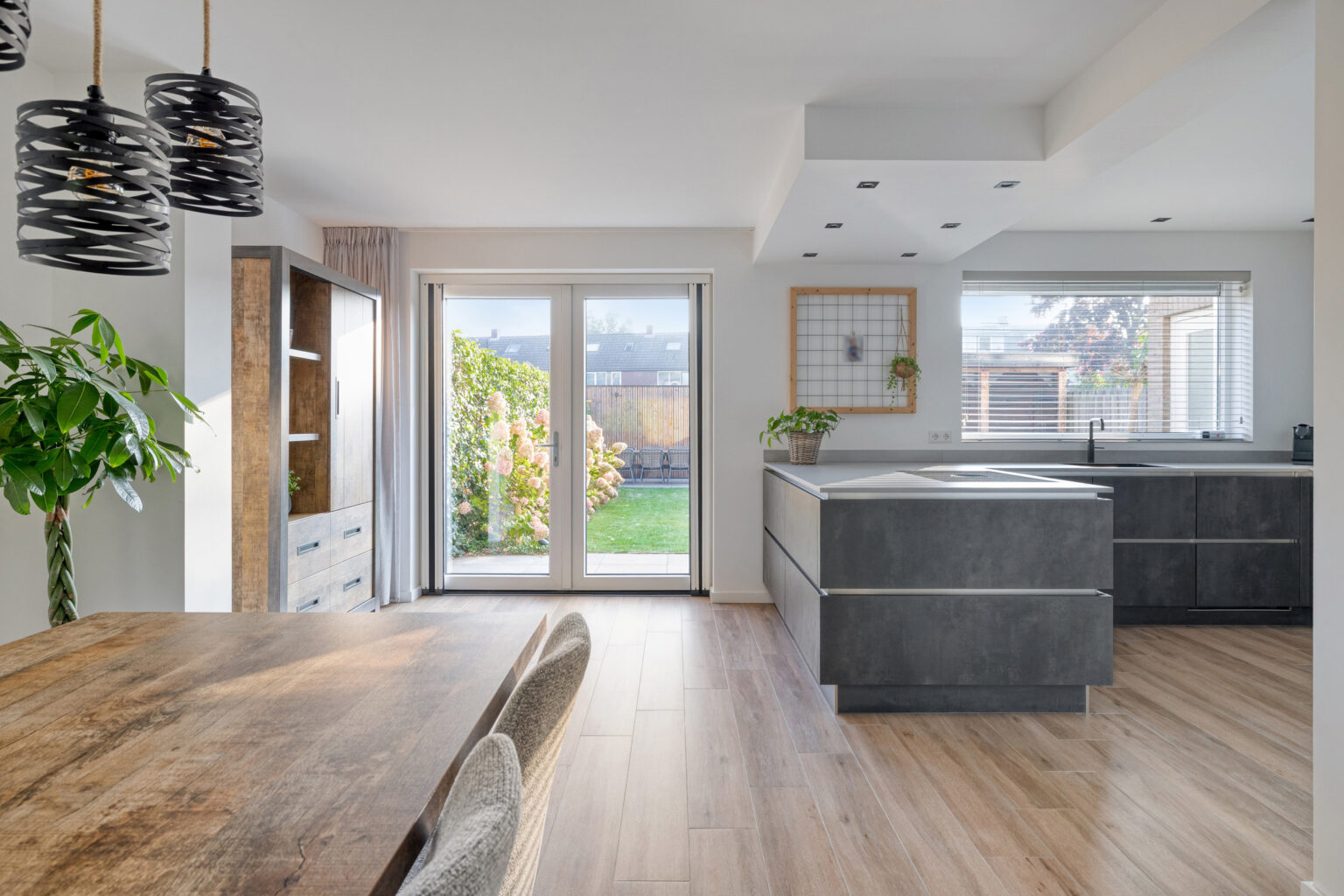 Binnen word je verwelkomd door een lichte, ruime woonkamer met een moderne open keuken die is ingericht met eigentijdse materialen en een stoere, jonge uitstraling – de ideale plek om samen te koken, te eten en te ontspannen. De woning biedt daarnaast maar liefst vijf royale slaapkamers, waardoor er volop mogelijkheden zijn voor een groot gezin, een thuiskantoor of hobbyruimte.