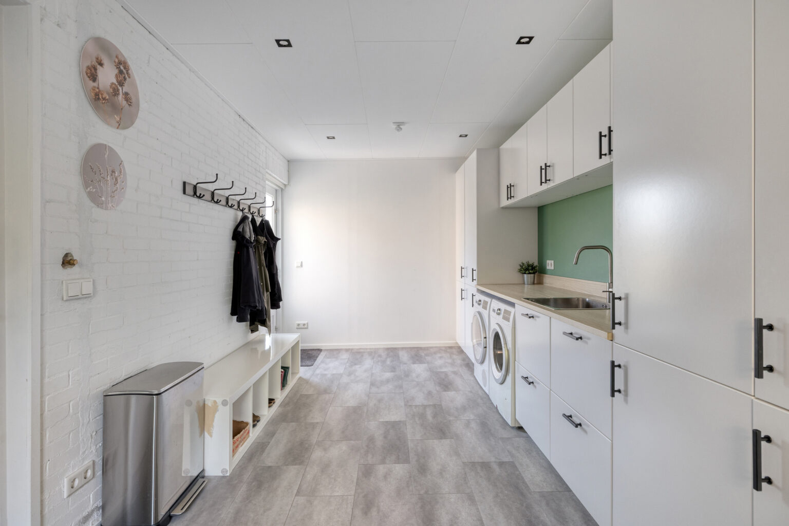 Daarnaast bevindt zich op deze verdieping de technische ruimte, uitgerust met de cv-opstelling (Vaillant, bouwjaar 2024), de omvormer van de zonnepanelen en een dakraam voor daglicht en ventilatie.