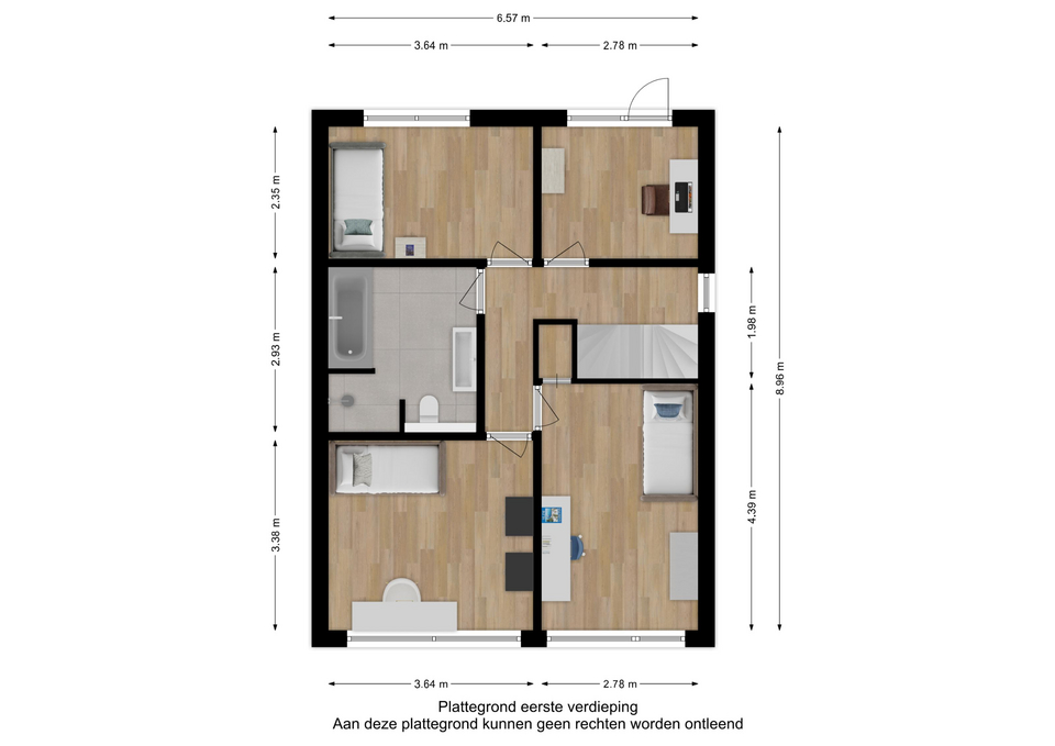 Op de eerste verdieping vind je vier instapklare slaapkamers, allemaal afgewerkt met laminaat, stucwanden en stucplafond, waardoor elke kamer licht, fris en sfeervol aanvoelt.