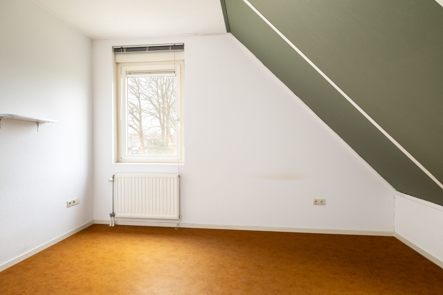 De slaapkamer aan de achterzijde biedt de vlizo-trap die leidt naar de bergzolder.