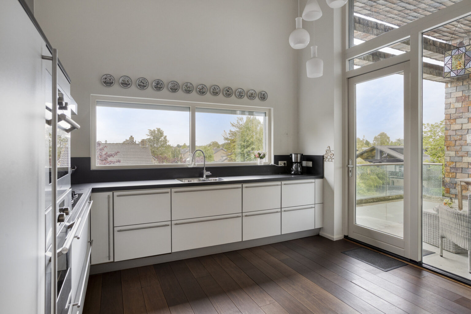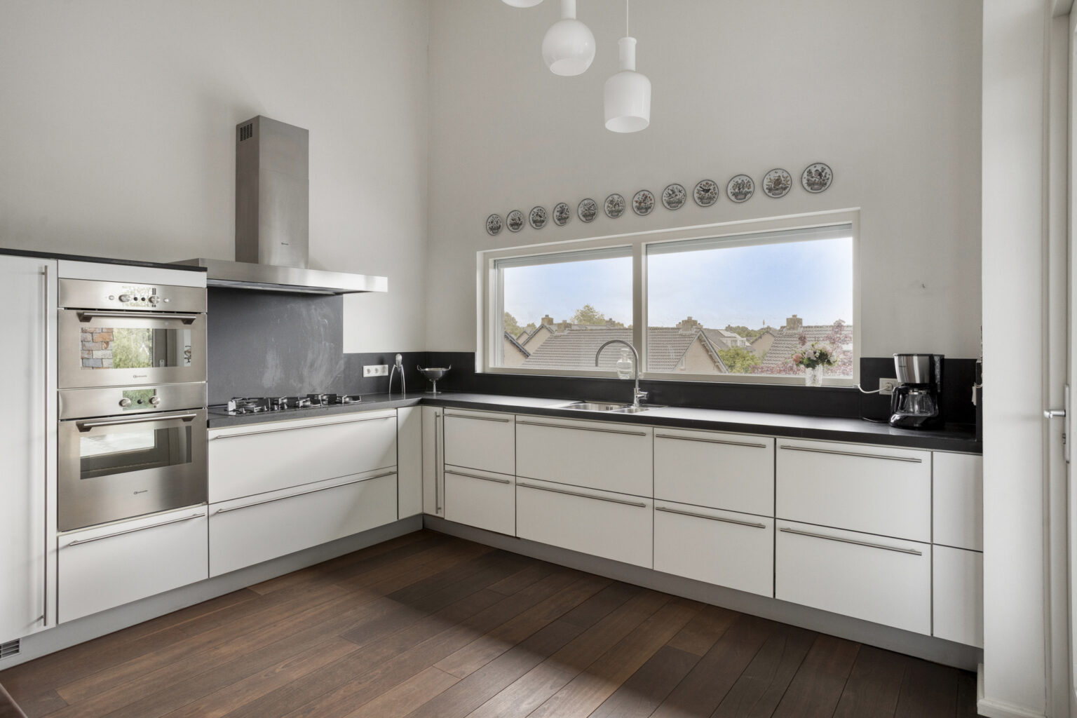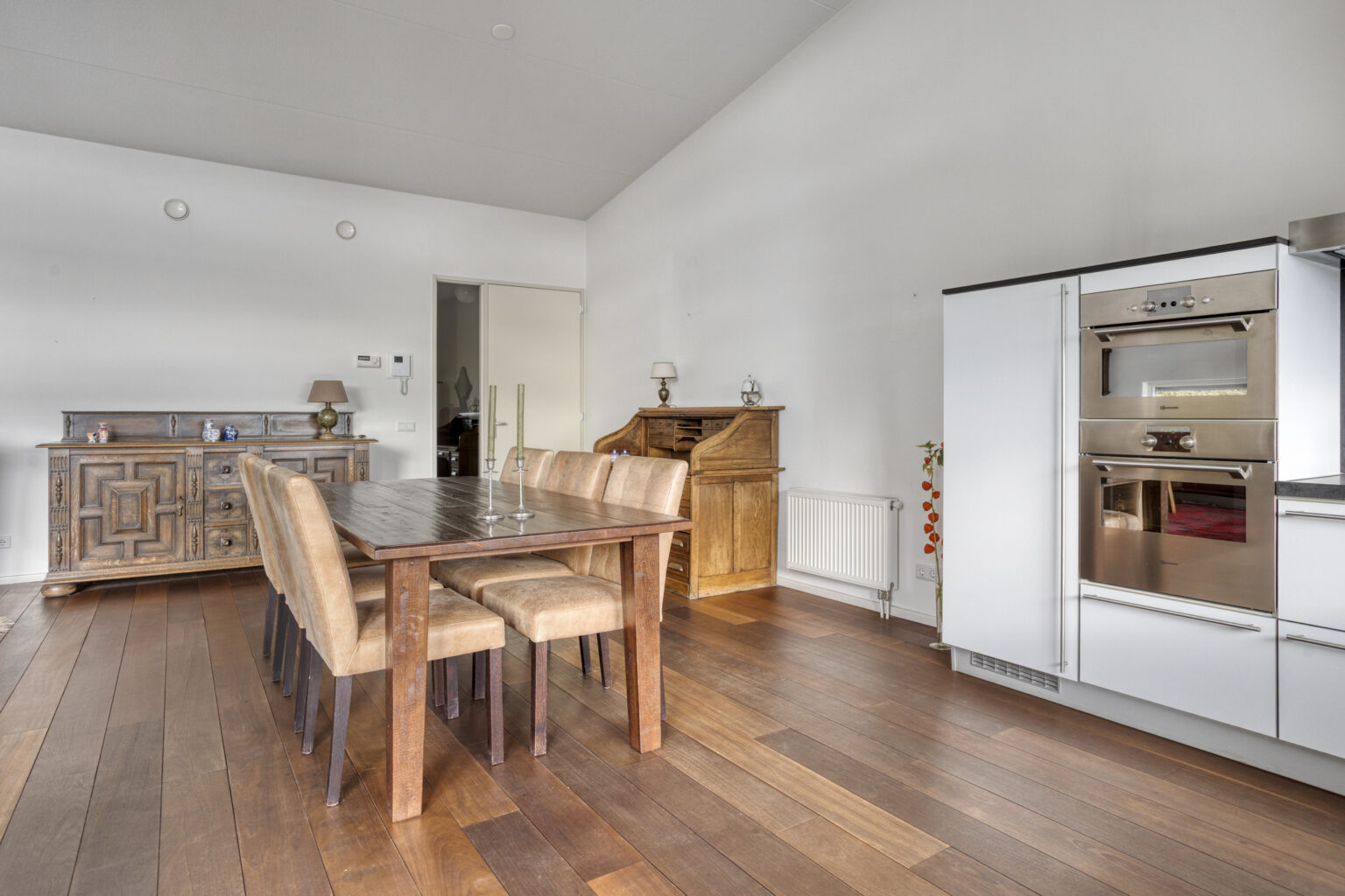 De royale woonkeuken is een echte eyecatcher. Voorzien van een 5-pits gaskookplaat, afzuigkap, koelkast, vriezer, oven, combi-oven, vaatwasser en diverse kasten. Dit alles tezamen met veel werkruimte maakt dit dé plek voor kookliefhebbers. De keuken staat in open verbinding met de ruime woonkamer, waardoor een lichte en uitnodigende leefruimte ontstaat.