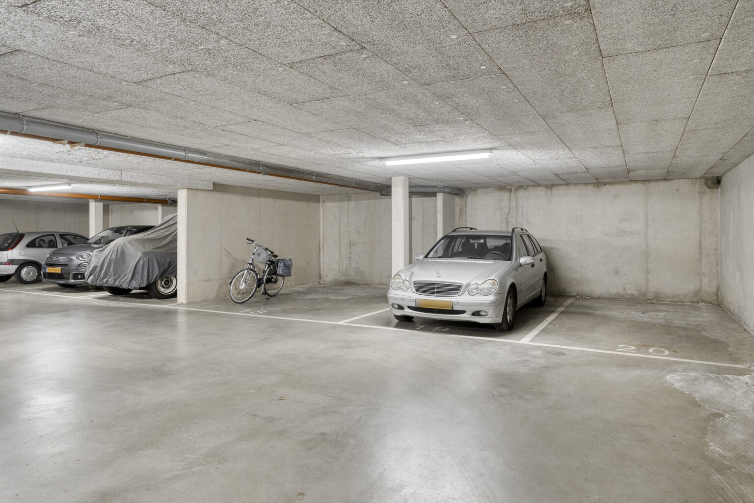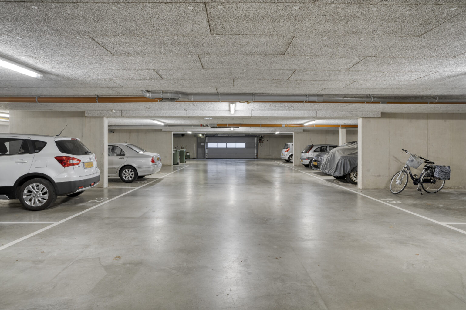 In de royale parkeerkelder tref je de twee bijbehorende parkeerplaatsen (nummers 12 en 19). Wat een luxe! Een elektrische deur sluit de parkeerkelder af. Je kunt verder inpandig het appartement bereiken.