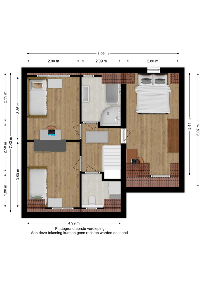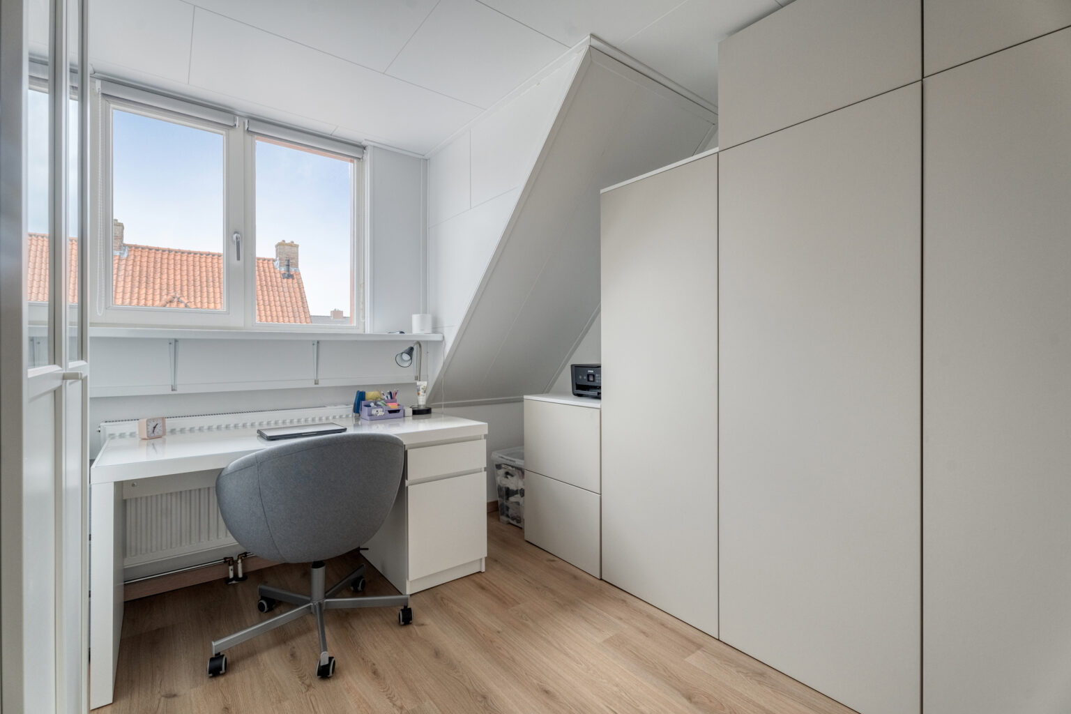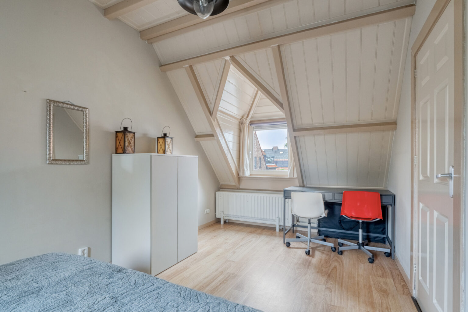 Vanaf de overloop heb je toegang tot drie sfeervolle slaapkamers, de badkamer en de vlizo-trap naar de bergzolder. De slaapkamers zijn afgewerkt met laminaat, strakke stucwanden, een licht plafond en diverse dakkapellen die voor extra licht en ruimte zorgen.