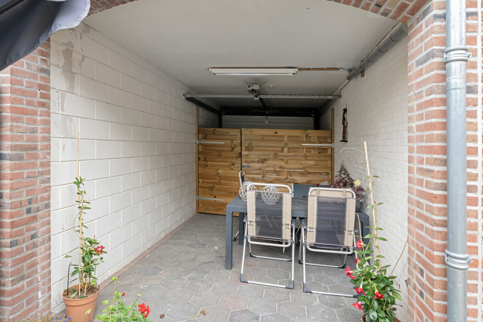 Via de afsluitbare carport onder de opbouw bereik je eenvoudig de voorzijde van de woning. Praktisch ingedeeld, vind je naast het huis een stenen berging en in de tuin een houten berging, ideaal voor opslag of tuinspullen.