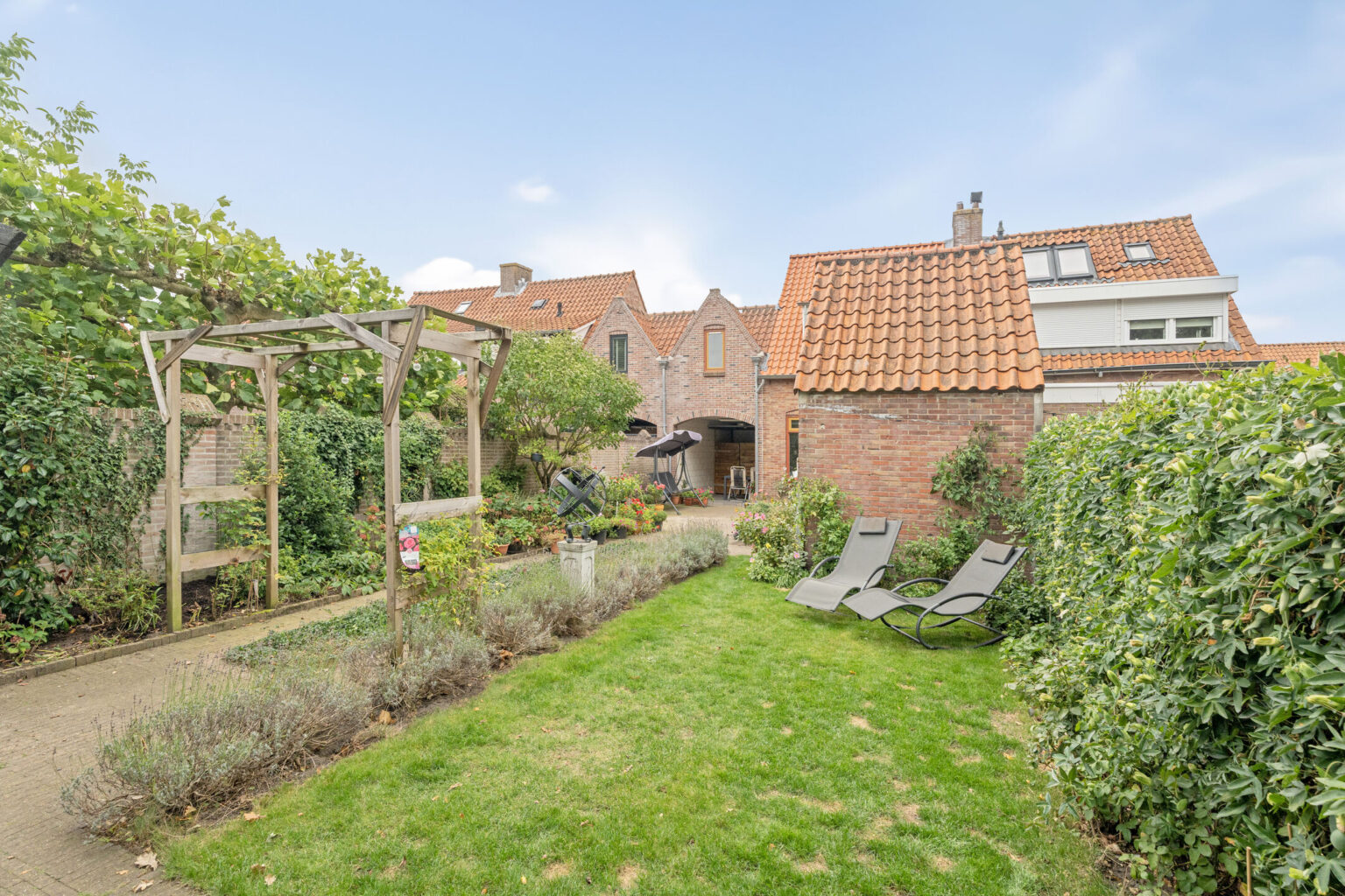 Dankzij de ligging op het westen, het fraaie terras, het groene gazon en de omliggende beplanting kun je hier volop genieten van het buitenleven, van de eerste zonnestralen in de ochtend tot de lange zomeravonden.