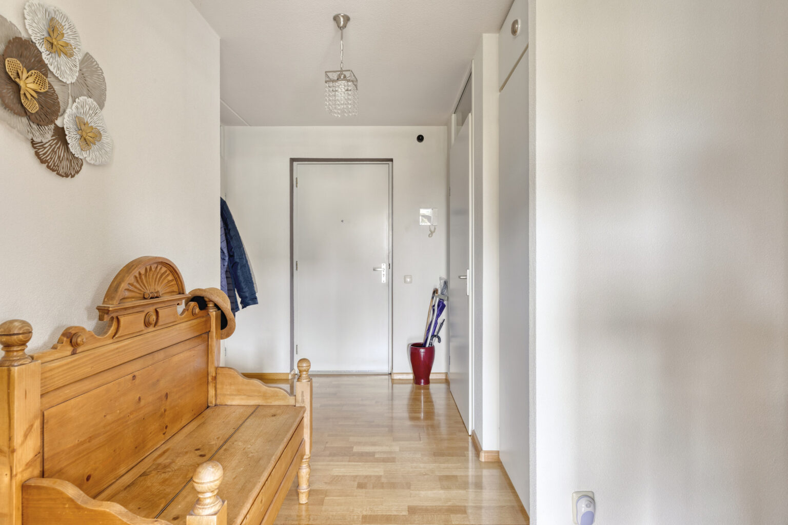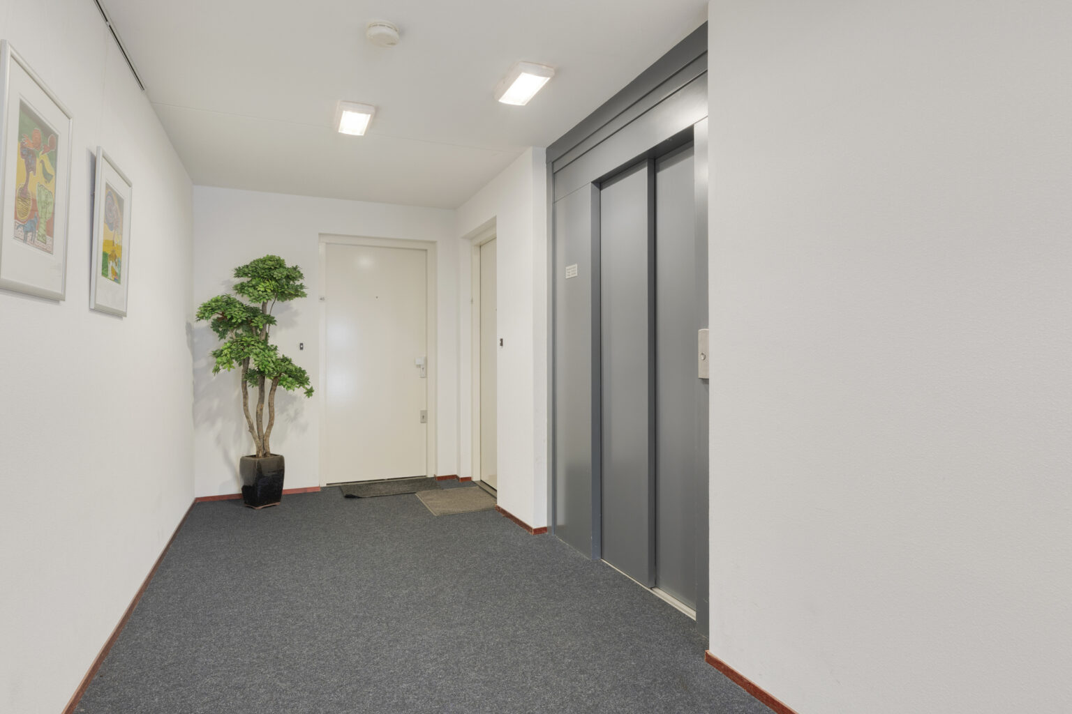 Na het verlaten van de lift kom je al snel bij de voordeur van het appartement.
